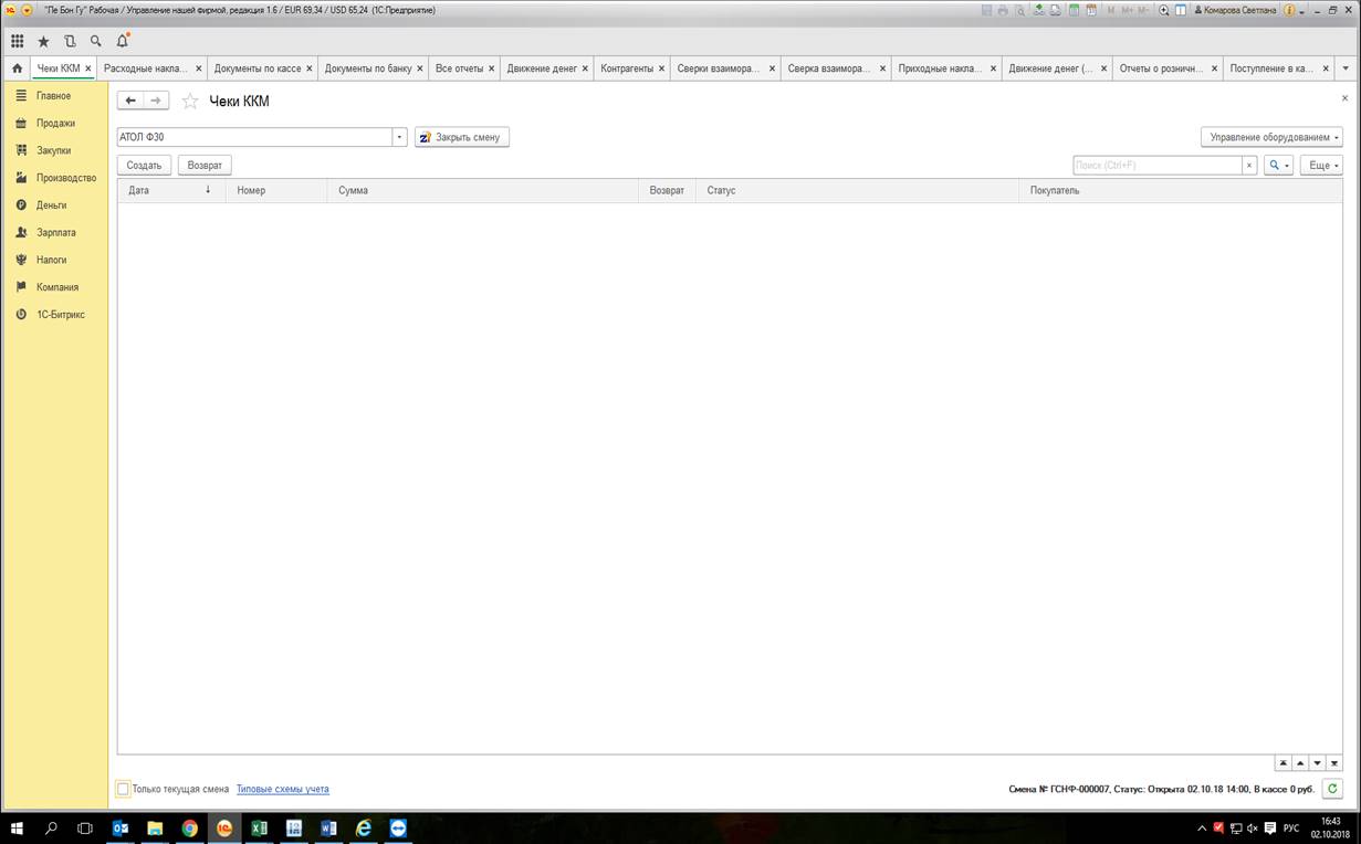 УНФ 1.6 - при пробитии кассового чека через кассовый аппарат в 1С не появляется документ