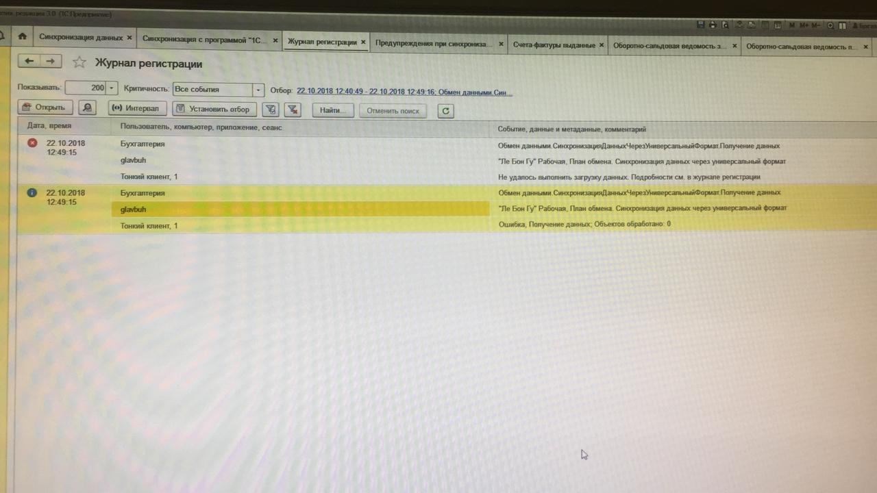 Ошибка в типовом обмене УНФ ->БП . Скрин