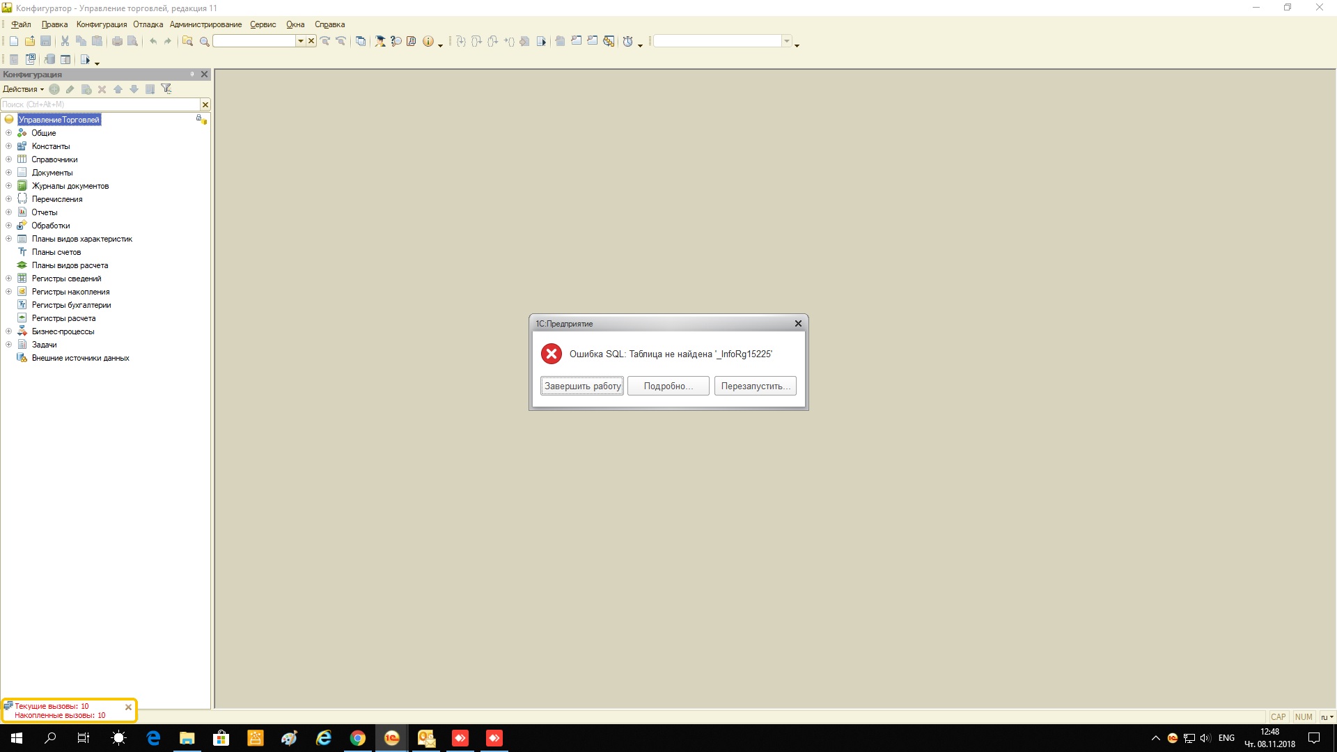 Необходимо срочно устранить ошибку 1С Управление торговлей