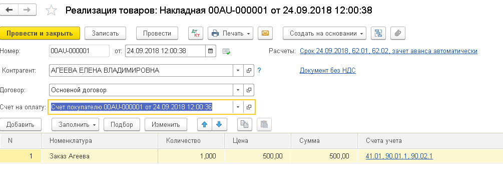 Сделать обработку по созданию док.Реализация (скриншот2) из Поступление на расчетный счёт (скриншот1).