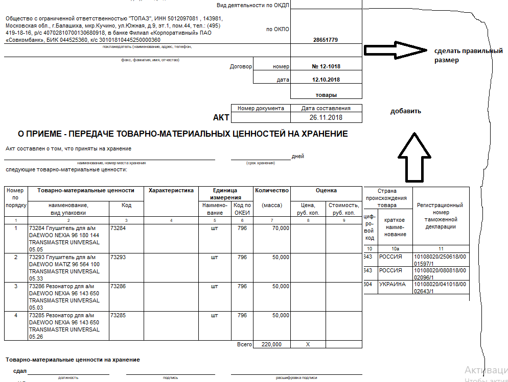 добавить колонки "код страны, страна, ГТД" которое берётся из документа