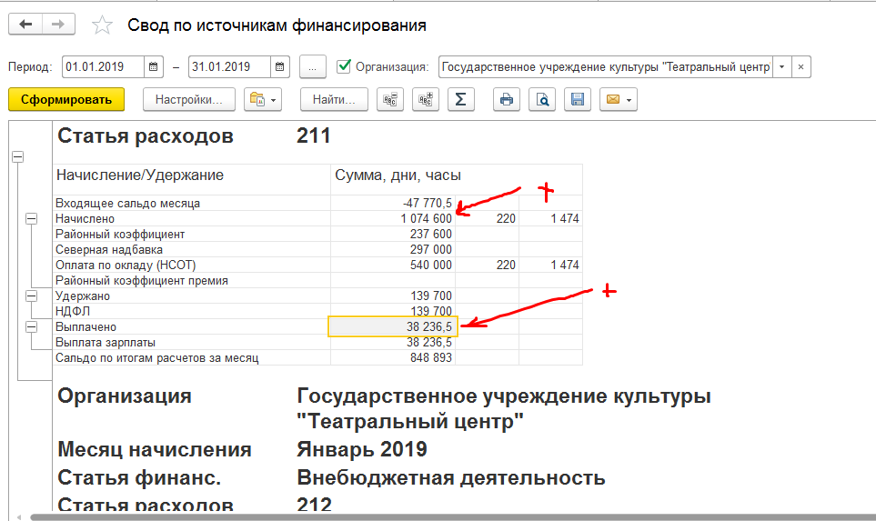 Разработать внешний отчет (на основании типового) "Свод по источникам финансирования", в который добавить данные по источникам финансирования из этого регистра сведений в раздел "Начислено" и эту же сумму в раздел "Выплачено". Должно получиться так как на рис. во вложении. (Надо так в своде по источникам финансирования).