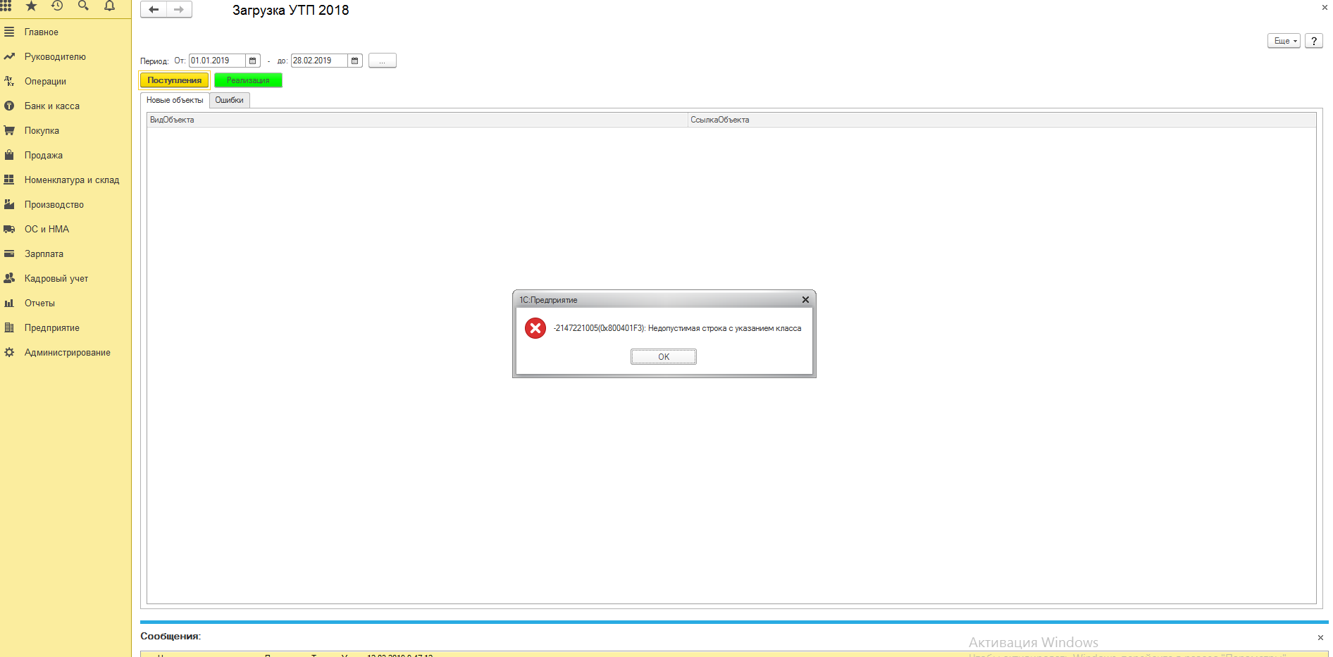 Ошибка при выгрузке документов из УТП в Бух через COM.