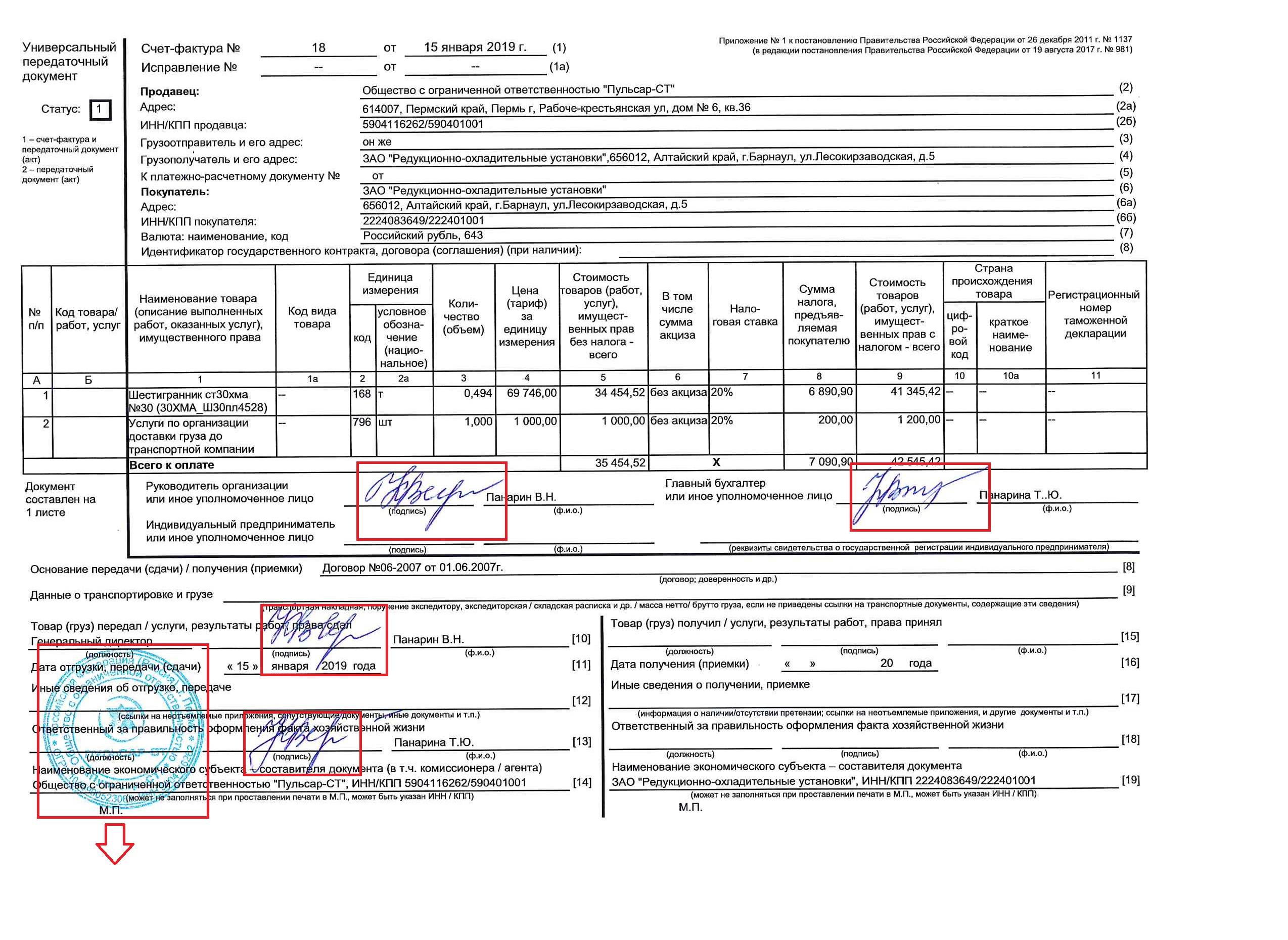 Расположение подписи и печати в образце, во вложении.