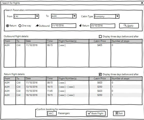 обратных рейсов будет выведен пользователю, когда пользователь выбирает тип рейса «Туда