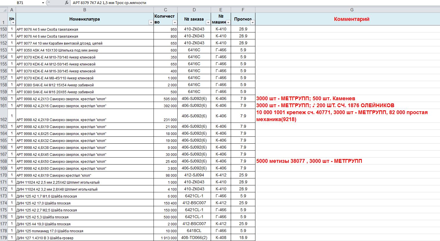 Уже много лет мы параллельно ведем файл в экселе – "Уже Заказанное на Склад". Там тоже указана номенклатура, кол-во, номер машины, заказа и дата прихода. И есть строчка, куда менеджеры, чтобы не забыть, вписывают "резервы" этого товара.
