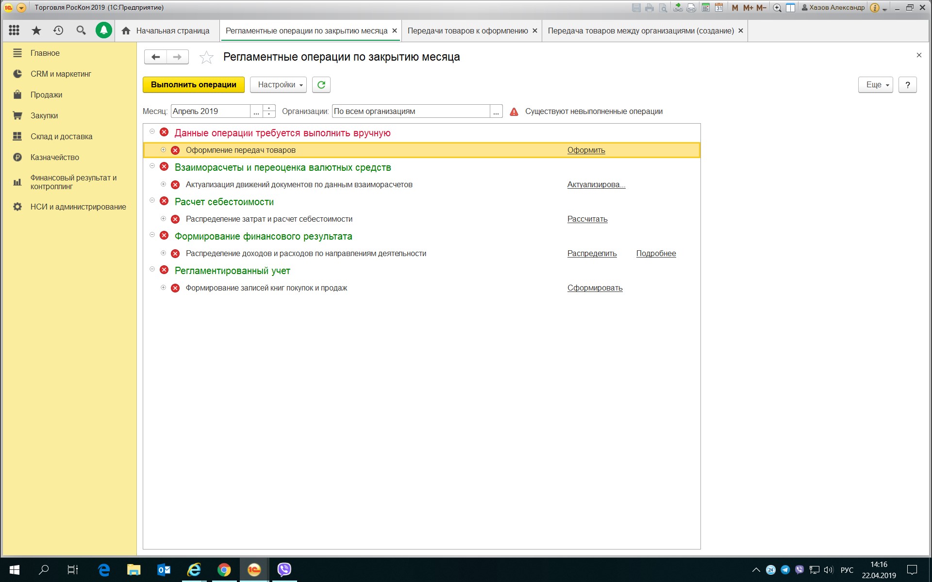По кнопке Оформить вручную запускается обработка - передачи товаров к оформлению, там по кнопке оформить документ все прекрасно заполняется. Проводим созданный документ передача товаров между организациями, оформляем счет фактуру и возвращаемся к исполнению регламентных операций по закрытию месяца.