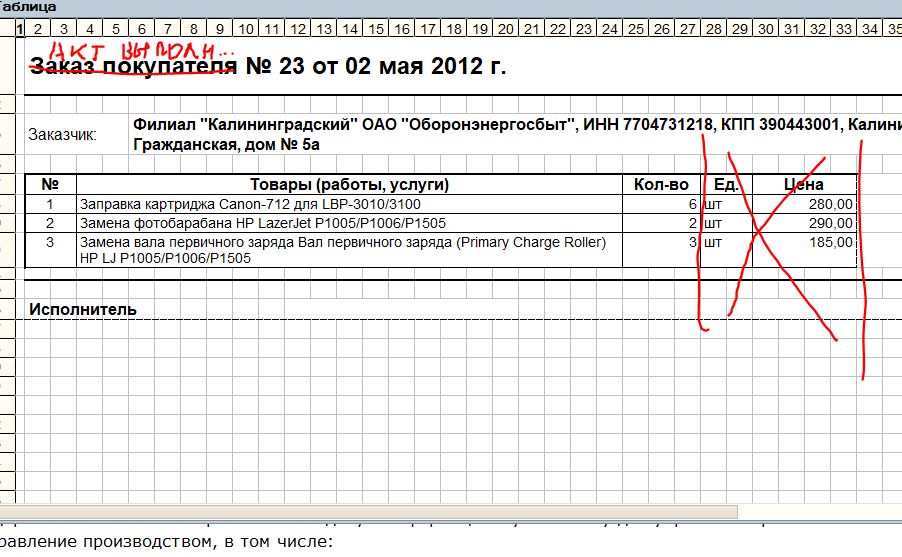 Собственно Убрать колонку и заменить надпись на Акт выполненных работ