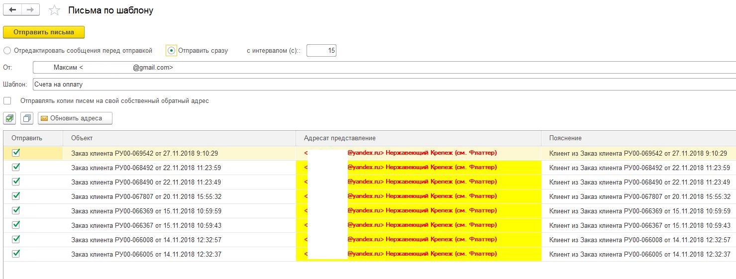 2 шанг - выбираем нужный адрес и жмем отправить письма.