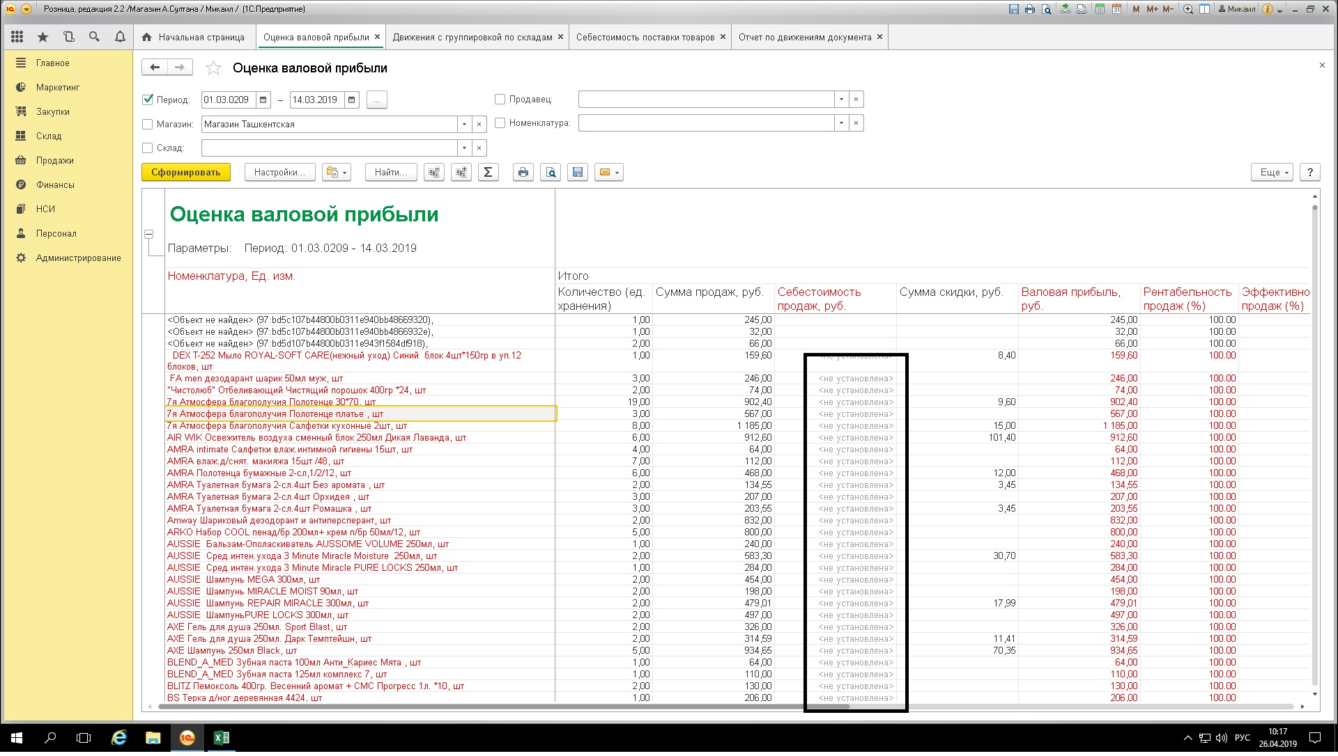 При формировании отчета Оценка Валовой Прибыли часть позиций номенклатуры попадает без себестоимости (не установлена выделение красным цветом), а не которые просто без цифр. Большая часть данных отображается с себестоимостью. При этом регламентное задание по расчету себестоимости установлено ежедневно. Попытки разобраться самостоятельно ни к чему не привели.