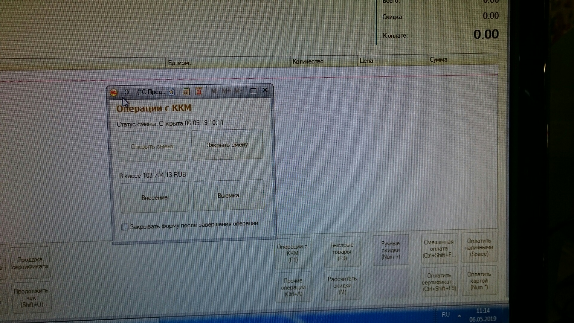 1) Вынести кнопки из состава прочие операции и операции с ккм в нижнее поле там, где располагаются кнопки оплатить ручные скидки и т.д.