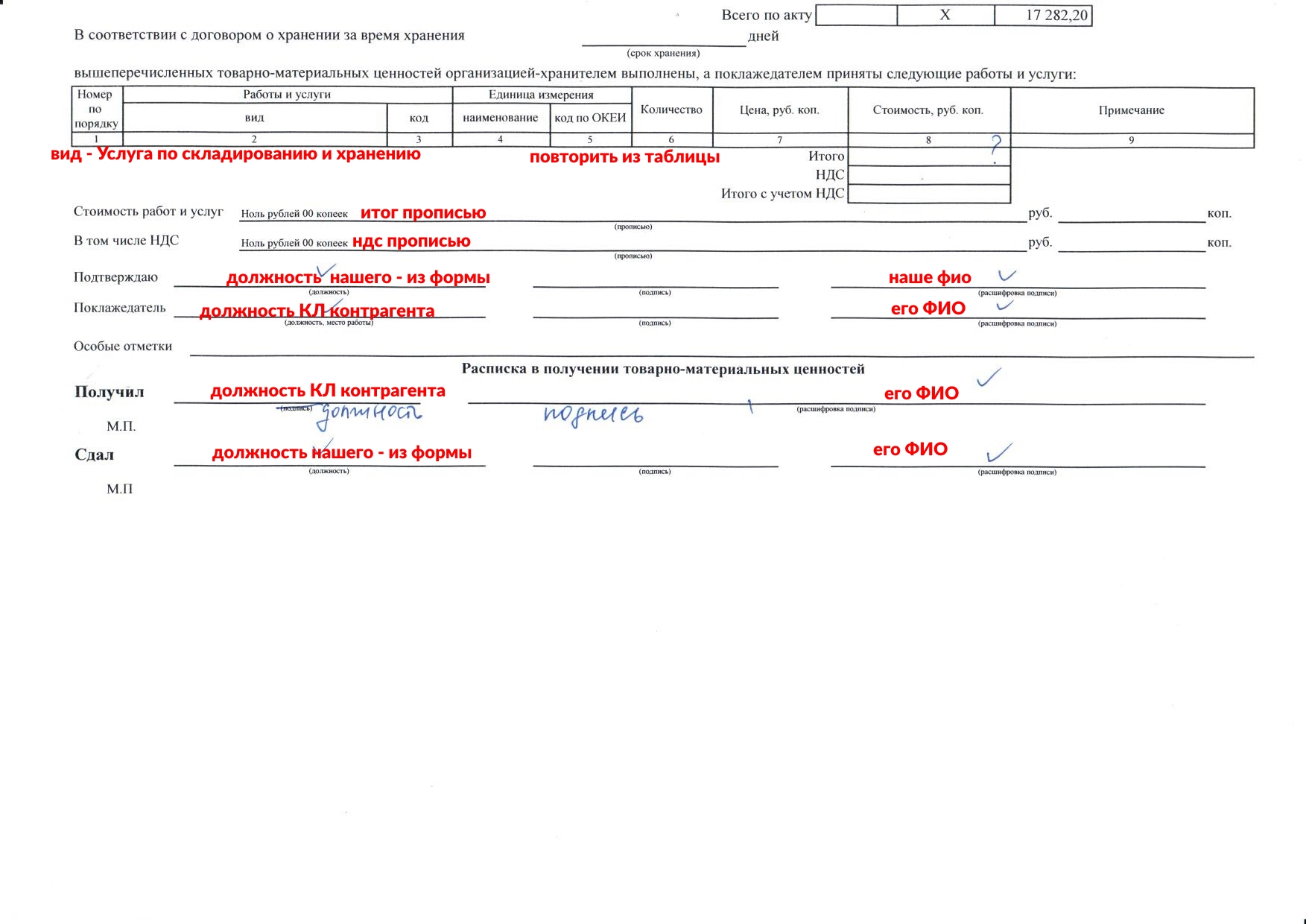 Поправить табличную часть.