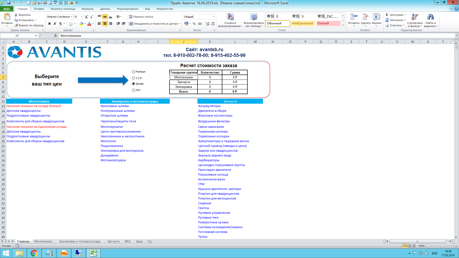 Здравствуйте! Нужно сфомировать прайс лист с возможностью для клиентов оформлять в нем заказы? Разделение по категориям номенклатуры есть? Пришлите файл экселя на почту tagir_1c@mail.ru , если не сложно.
