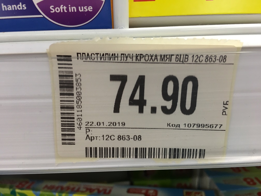 Нужно сделать ценник-этикетку такого вида (во вложении). Данные этикетки будут использоваться как ценники на витрину. В отличии от этого ценника наименование сделать в 3 строки. Так же нужно сделать что бы цена без акции считалась автоматически. На примере: