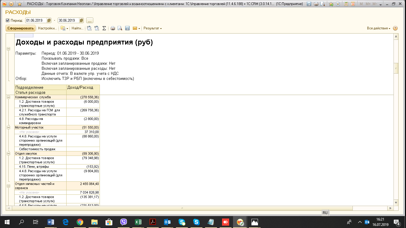 Необходим доработать отчет Анализ доходов и расходов. Чтобы было видно, на какие подразделения был списан инструмент, СиЗ и спецодежда, канц. товары, оргтехника с разбивкой по номенклатуре.