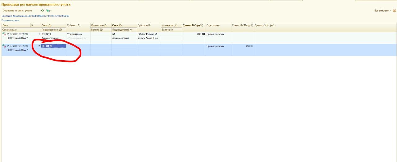 То что обведено, означает что эта сумма не будет учитываться при расчете налога на прибыль, в налоговом учёте эта сумма должна попадать, по моему, на счёт 91.02.7 правда не помню точно, а статья расходов этих банковских услуг должна быть : внереализационные расходы, сейчас попробую зайти на свой комп и прислать как это выглядит в старой базе