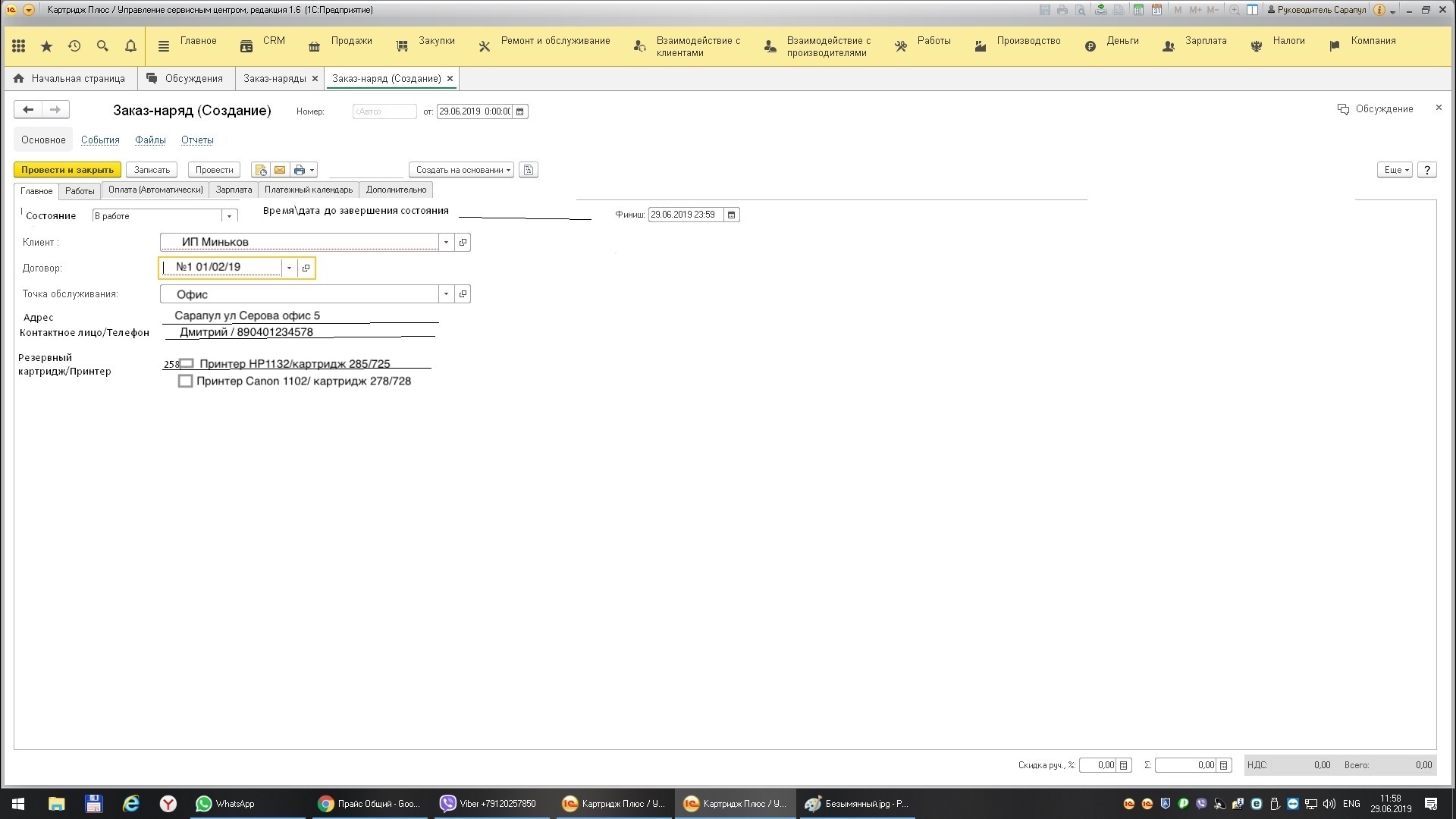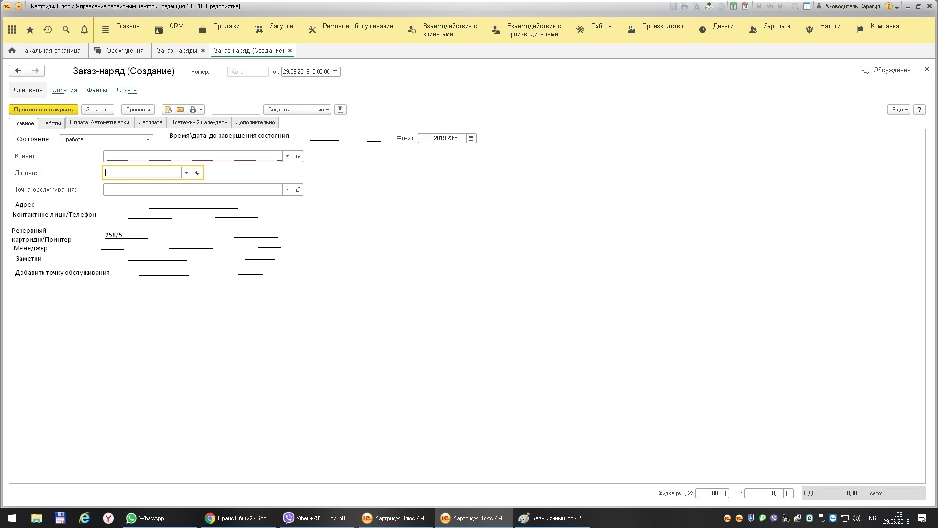 В Управлении Сервисным Центром 1.6.16.176 добавить формы, кнопки и печатную форму
