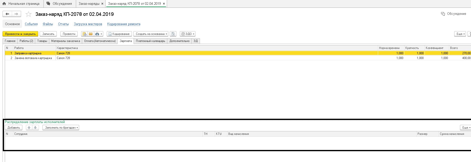 В Управление сервисным центром 1.6.16.176 сделать автоматическую подстановку зарплаты в...
