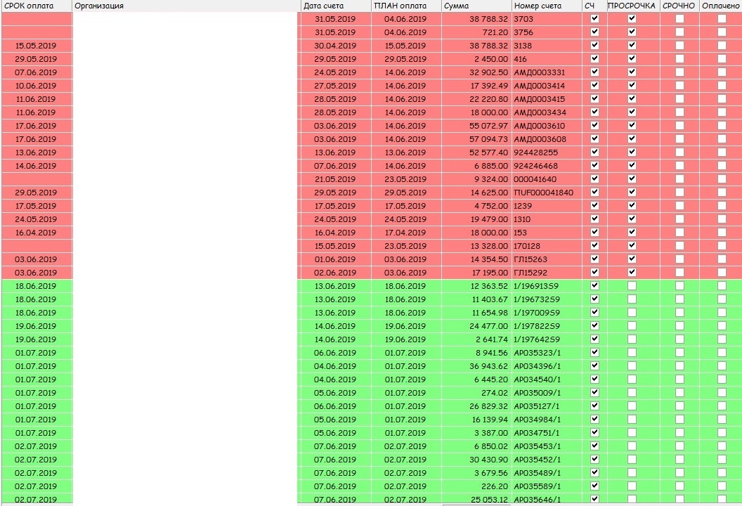 В журнал должны попадать помеченные на удаление документы, не проведённые, проведенные. По умолчанию попадают все счета, за исключением тех, которые были оплачены более 7 дней назад. (То есть счет оплатили 8 дней назад – он не попадает). При этом должна присутствовать опция (Например, в виде галки), чтобы отображались все оплаченные счета за весь период.