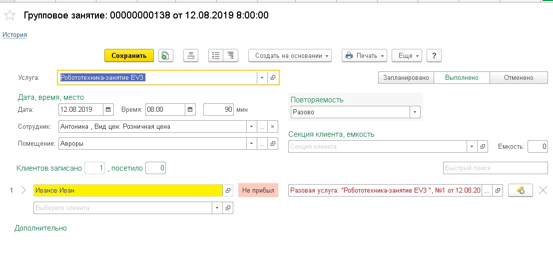 Есть база 1С: Фитнес клуб. Управляемый интерфейс.