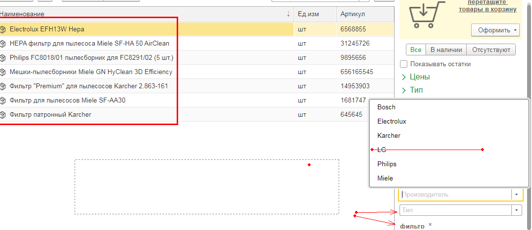 в 1С УНФ надо доработать фильтр номенклатуры таким образом что если для категории есть несколько доп свойств при установке фильтра по этим свойствам должно соблюдаться правило - нет ни одной номенклатуры с таким свойством не выводить в возможность фильтрации