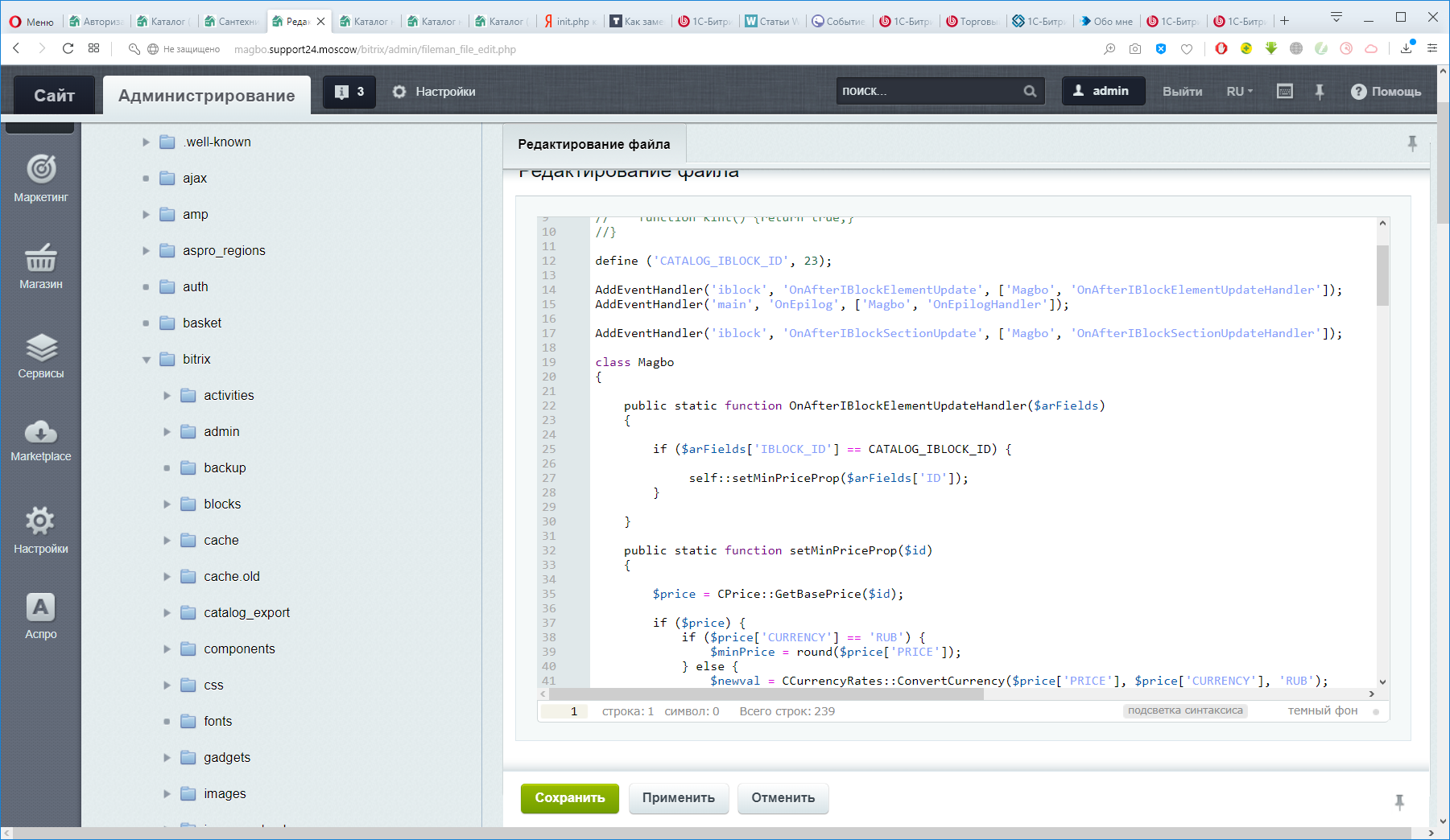 На сайте настроена интеграция с 1С УТ 11. Все хорошо выгружается, если делать полную выгрузку. В данный момент поменялась задача выгрузки. Необходимо, что бы описание товара, фото и т.п. информация оставалась на самом сайте и не менялась, а из 1С передавалась только цена и количество. Такие изменения делаются через файл init.php, скрин в приложениях. На скриншоте пример процедур, через которые происходят изменения. Жду от вас цены и сроки.