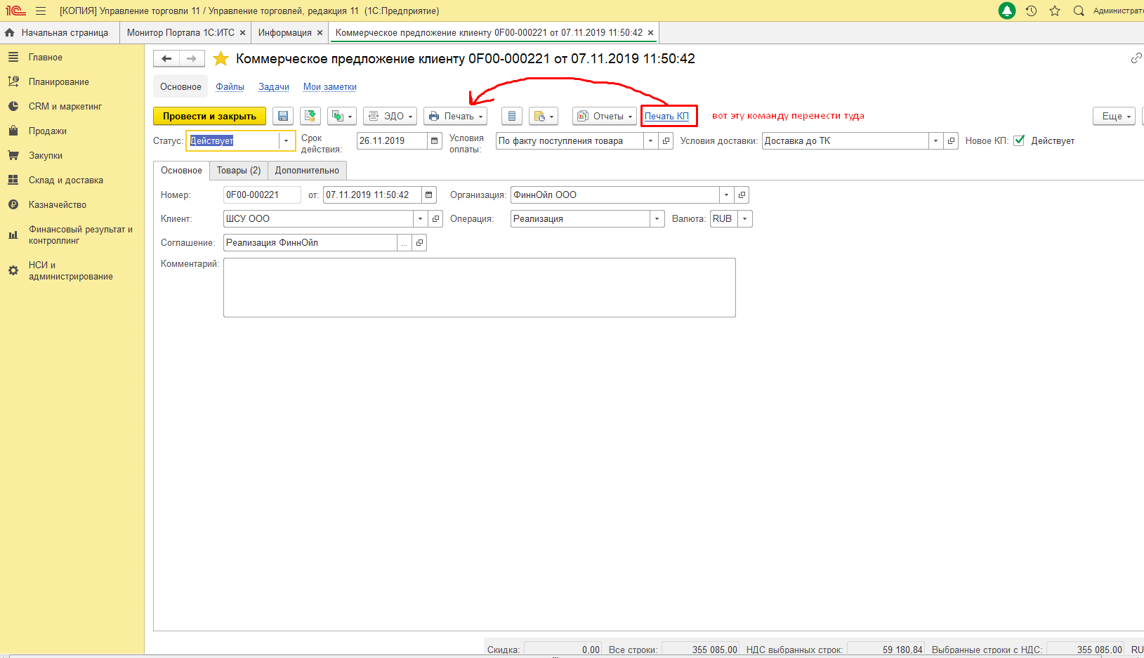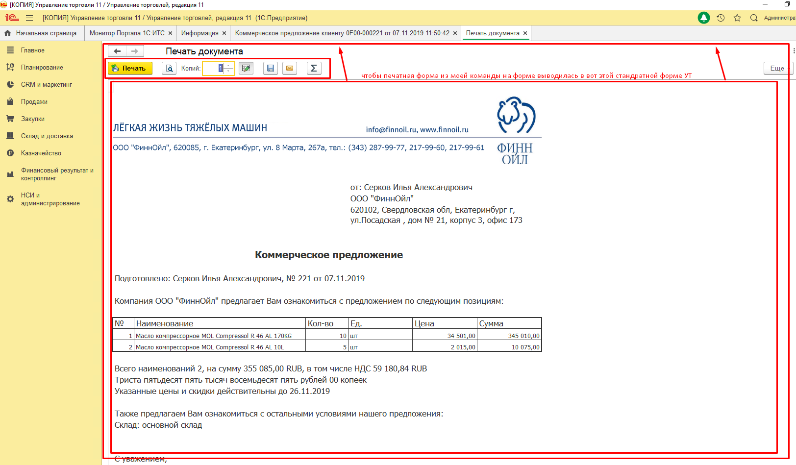 Есть переделанная печатная форма КП в УТ 11.