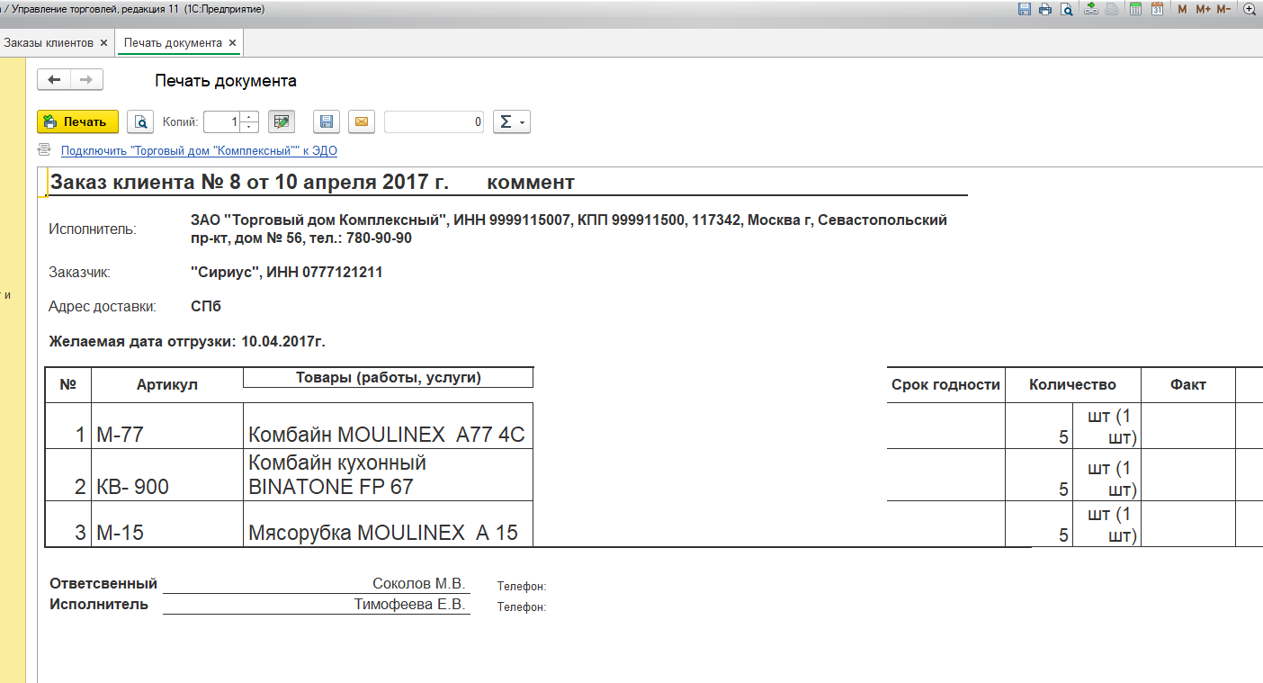 Есть 2 печатные формы счета из Заказа клиента - Заказ клиента и Заказ клиента с суммой.