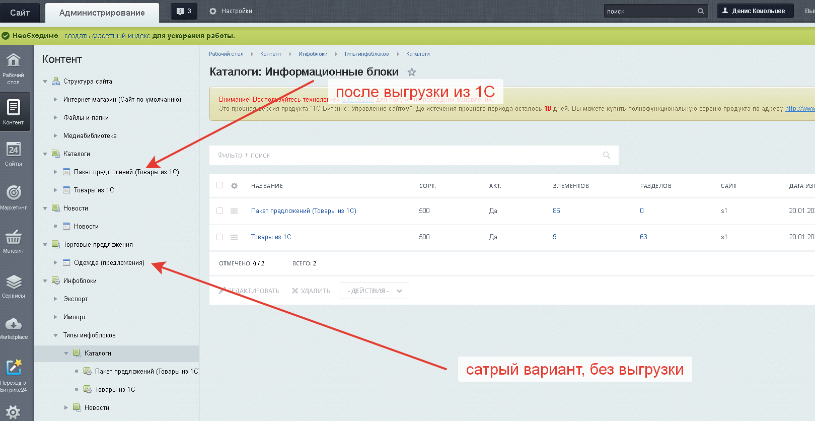 нужно разобраться и научить битрикс работать с размерами из 1С-ки.