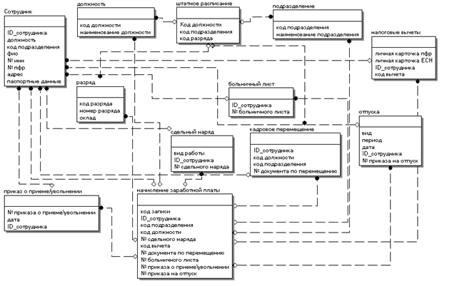 система должна учитывать кадровые перемещения, учет налогов, содержать документы о приеме и увольнении сотрудников, начисление заработной платы по сдельному наряду, учитывать больничные листы и отпуска сотрудников. Примерная структура прилагается.
