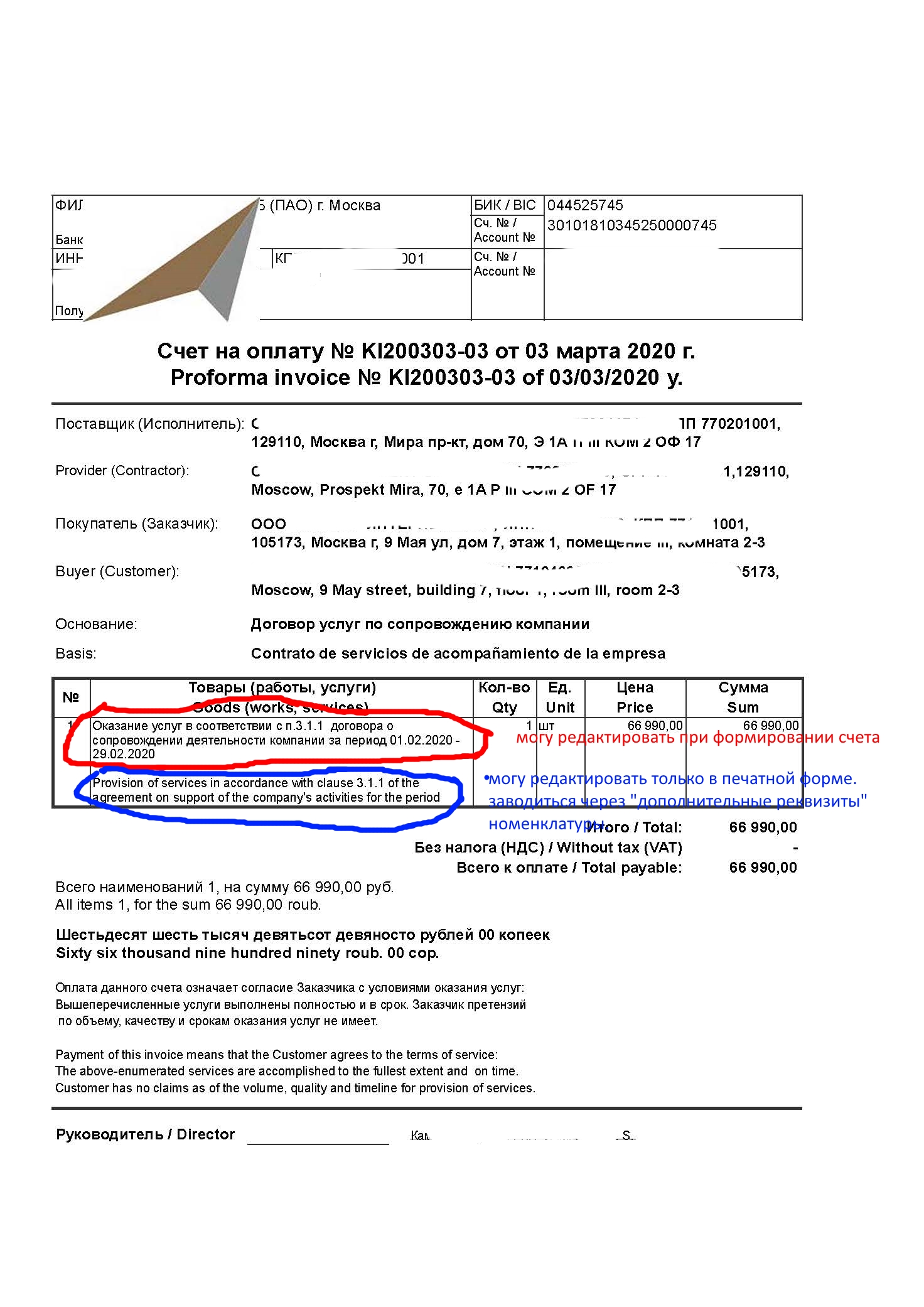 Есть ВПФ счет и АКТ с переводом на английский. БП 3.0