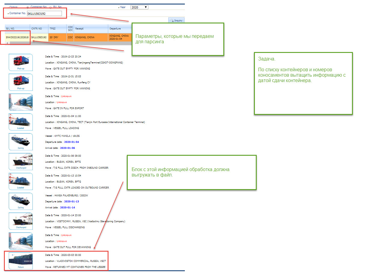 Сайт: http://eservice.sinokor.co.kr/ASPNETService/COM/CP_TrackingInquiry.aspx