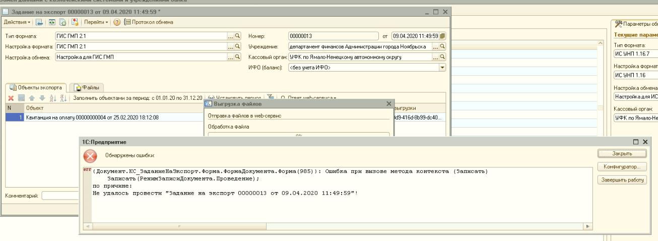 Был настроен обмен 1с БГУ 1.0 с ГИС ГМП 1.6