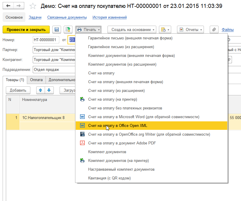 Есть функционал БСП, позволяющий формировать печатные формы в документы DOCX (см. рисунок во вложении), которые одинаково удачно открываются как в родном редакторе WORD, так и в Libre Writer (Linux). В шаблоне текста можно указывать статичные гиперссылки, но функционале отсутствует возможность вывести текст (секцию) с динамически сформированной гиперссылкой. Т.е. при выводе секции печатной формы нет возможности сформировать фрагмент текста присоединив к нему гиперссылку. В данном случае речь идёт о любой гиперссылке, включая внешние ссылки на объекты 1С. Пример формы как должна быть сформирована гиперссылка во вложении BillWithHyperlink.docx . Минимально необходимый вариант, когда гиперлинк в шаблоне будет указан на выводимое значение переменной, например ниже вывод переменной "Документ":