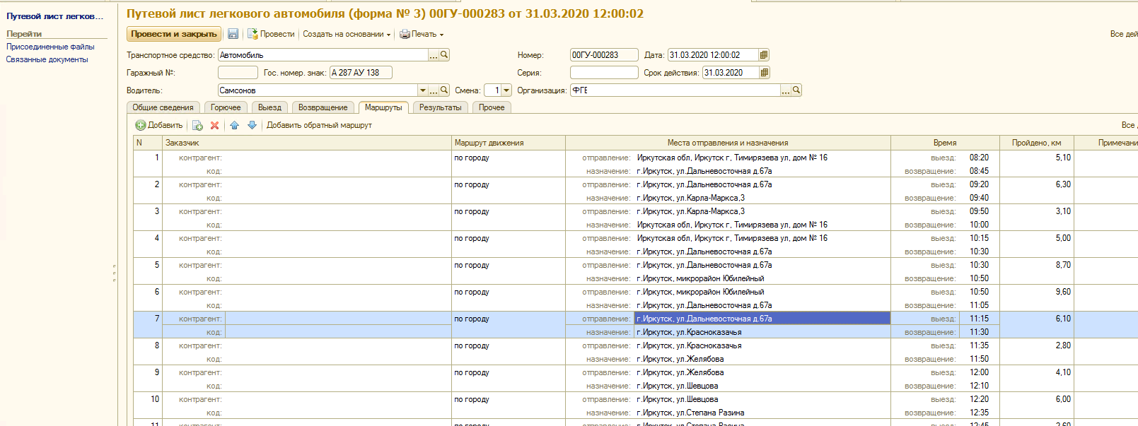 На основании создавался и заполнялись возможные поля по таксировке путевого листа.