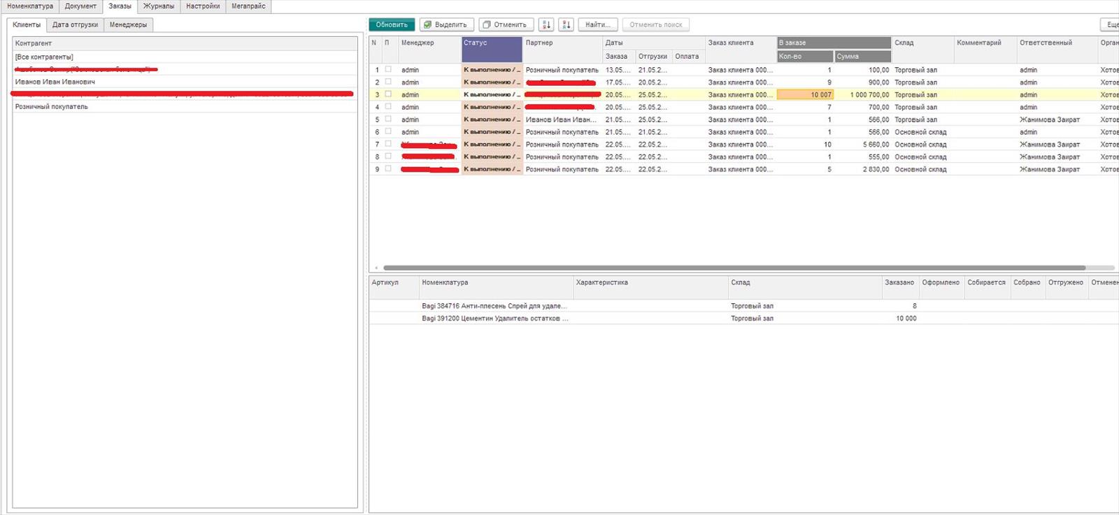 3)Исправить отображение статусов заказа. В данном мониторе везде статус «К выполнению / В резерве» по факту может быть и «готов к обеспечению» и «в процессе отгрузки». Если возможно лучше отображать встроенный журнал с его статусами в помощнике продаж. Нужна возможность одновременной фильтрации по менеджеру , по контрагенту(по группам тоже), по дате отгрузки, по статусам и сброс всех фильтров.