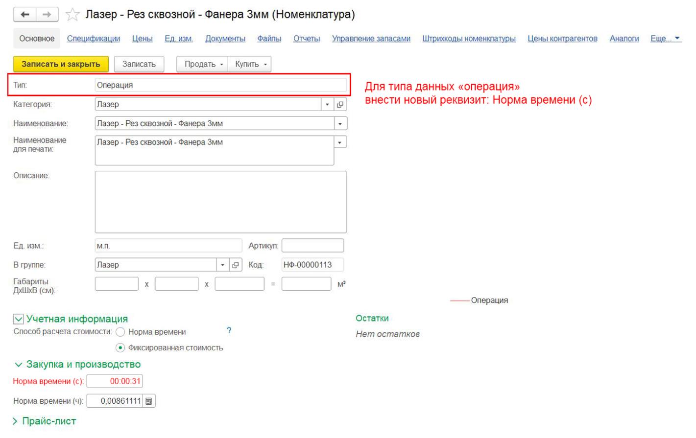 В ценах мне хотелось бы видеть фиксированную стоимость за 1 единицу измерения, относительно ставки за час (например 200руб), при этом в формировании цены будет участвовать норма времени, т.к. без нее не будет происходить автоматический расчет, а мне нужно все сделать на автоматике, а не с калькулятором в руках сидеть, на то она и программа. Изображение 06