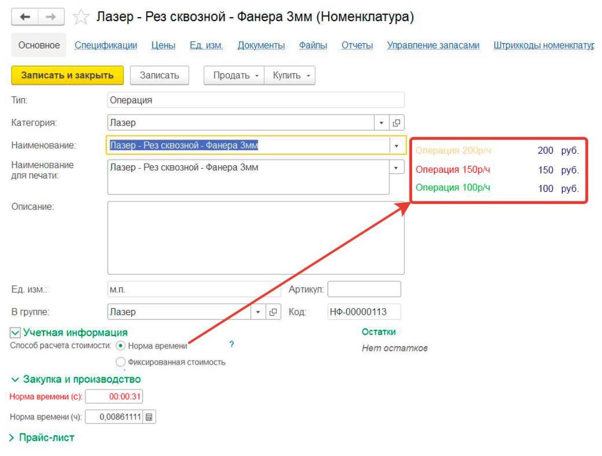 Сразу отвечаю на вопрос, почему я не хочу использовать автоматический расчет цены на основании расчета нормы времени из карты номенклатуры. Потому что: