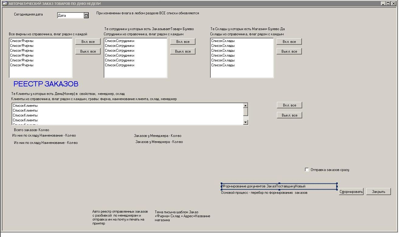 5. Формируется реестр по каждому сотруднику из двух частей: отправленные и неотправленные заказы и печатаются на принтер сотруднику (прописан у сотрудника).
