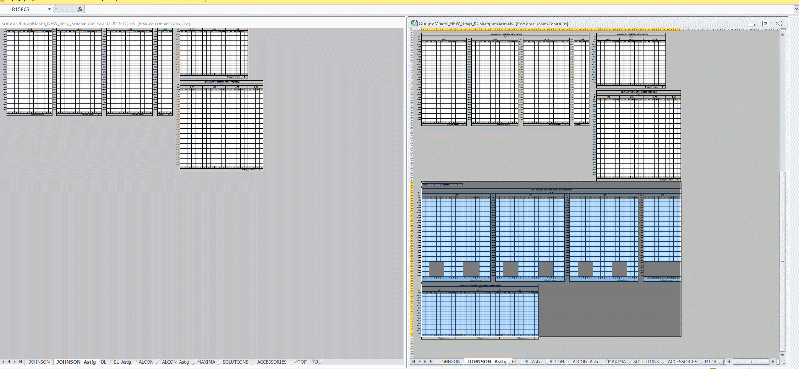 Поставщик обновил прайс и надо добавить несколько позиций и поменять несколько. Обработка уже есть, надо просто по образцу переделать для новых товаров и поменять где для старых изменились ячейки. Скрин с разницей в листах прилагаю (для одного листа). Не пугайтесь количества ячеек, это параметры товара, в обработке их заполнение есть в коде.