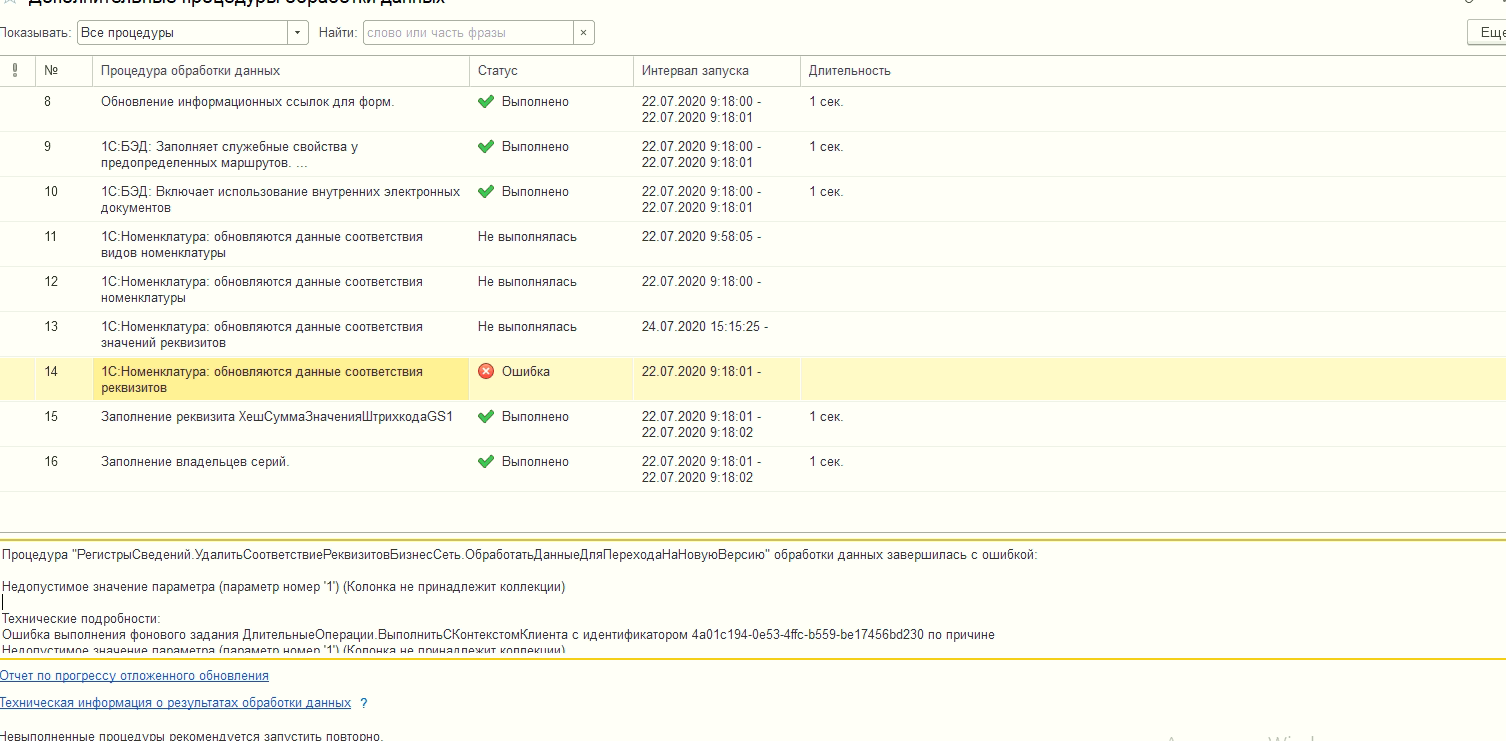 Процедура "РегистрыСведений.УдалитьСоответствиеРеквизитовБизнесСеть.ОбработатьДанныеДляПереходаНаНовуюВерсию" обработки данных завершилась с ошибкой: