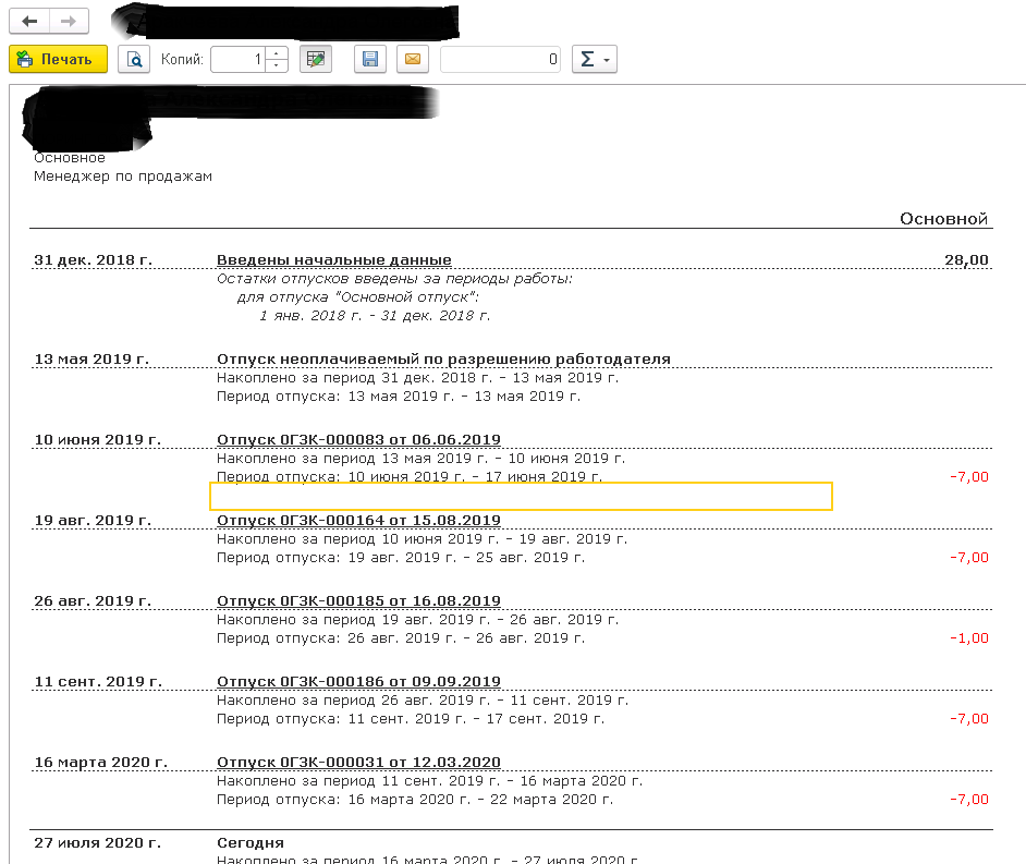 1С 8.3 ЗУП 3.1 Отпуска сотрудников, ошибка