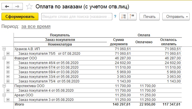Есть отчет стандартный "Оплата по заказам (с учетом отв лиц)" - в него нужно добавить колонку "Срок оплаты" перед колонкой "Оплачено". В него собственно и выводить наш доп реквизит из заказа. И если текущая дата больше Даты "срока оплаты" и Заказ не оплачен полностью, то эту строку выделять красным.
