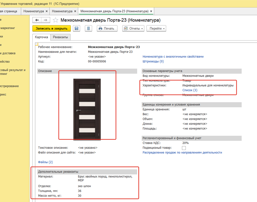 Также в файле есть обычные товары, которые не нужно будет заводить по характеристикам, это обычные комплектующие дверей.