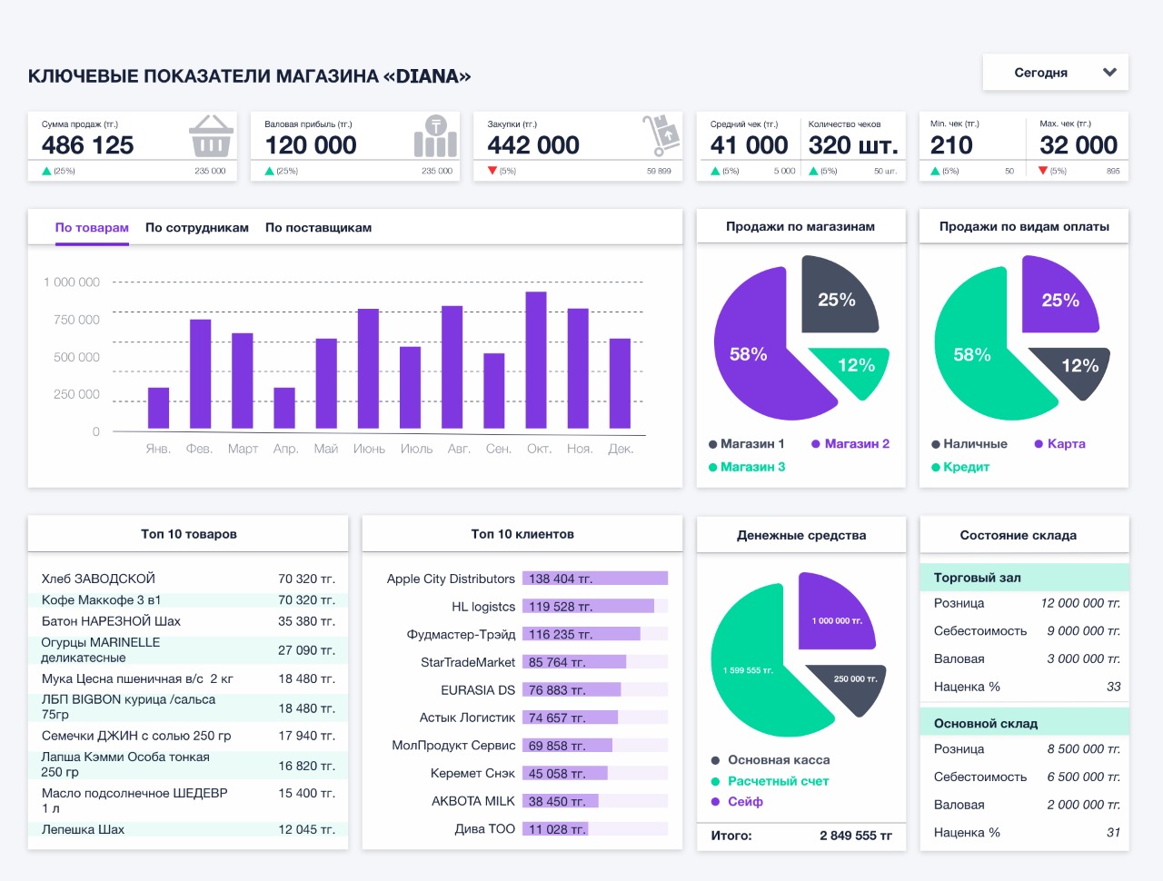 10) Конфигурирование в 1С:Предприятие - Дэш-боард для руководителя с фильтром магазин + склад
