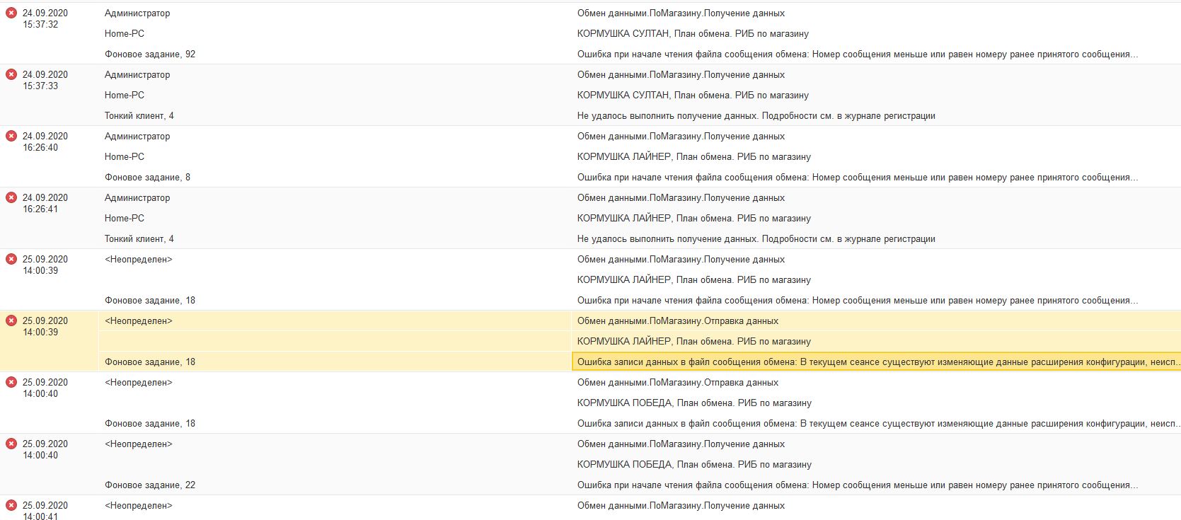 Недавно установили самописное Расширение для всех магазинов, после чего "слетел" обмен между магазинами с формулировкой "В текущем сеансе существуют изменяющие данные расширения конфигурации ........". Человек, кто писал данное расширение, провел какие-то манипуляции, сделал запуск главной базы с условием "/С ЗапуститьОбновлениеИнформационнойБазы", и посоветовал мне сделать тоже самое с другими магазинами, что должно было по его мнению решить вопрос с обменом. По его совету я запустил подчиненный узел с условием обновления "Победа"(это тот магазин, который пустой) - база обновилась на 5% и рухнула. к моему стыду, я не сохранил базу перед обновлением. Ближайшая копия есть за июнь месяц. Не знаю насколько это критично, поскольку регистры магазина пустые. Остальные магазины я трогать не решаюсь.
