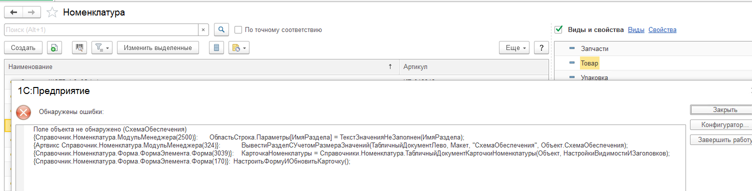 УТ 11. После обновления появилась ошибка при открытии номенклатуры, см вложение.