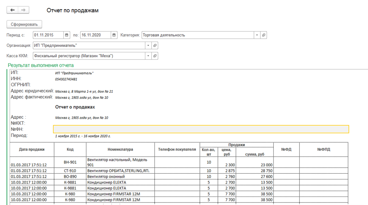 Пример формируемого отчета из УТ 11.4 на приложенном скриншоте