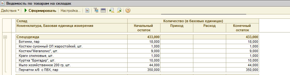 Здравствуйте. УТ 10. Есть отчет "Ведомость по товарам на складах" (принтскрин во вложении).
