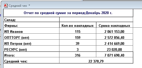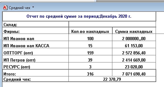 Есть внешний отчет который выводится по продажам, в том числе по товарным чекам. Выглядит как на принтскрине во вложении. Там отдельно выводится опт, отдельно розница (Товарные чеки). Нужно будет строку с товарными чеками (ИП Иванов) разделить на две - отдельно будет выходить товарные чеки с нашей галкой (ИП Иванов нал касса), отдельно без кассы (ИП Иванов нал)